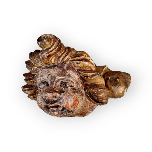 Large 18th Century Baroque Period Antique Carved Wooden Cherub Head
