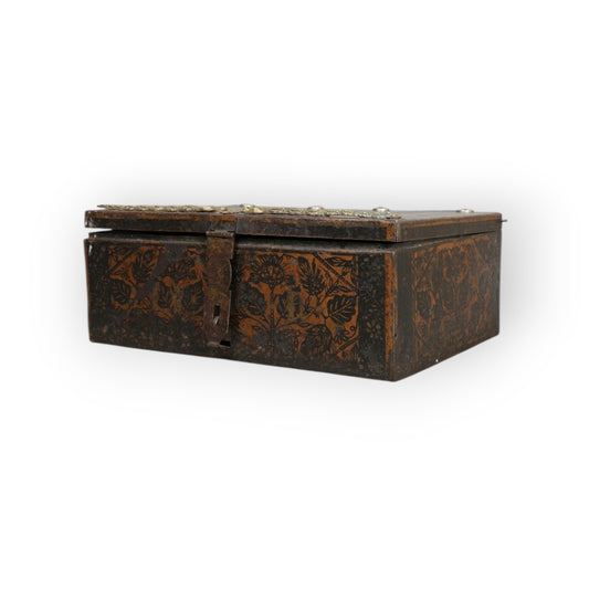 18th Century Continental Antique Alms Box of Wood and Metal Form