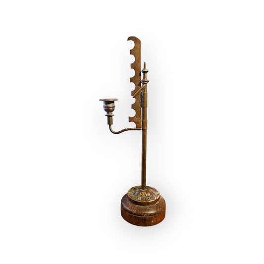 19th-Century German Antique Brass "Saw" Candlestick | Rise-and-Fall Candle Holder