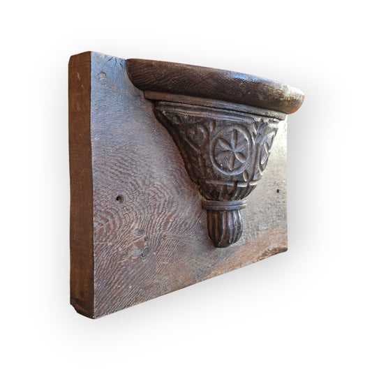 Late 15th‑Century / Early 16th-Century Antique Carved Oak Misericord – Simpler Gothic Form
