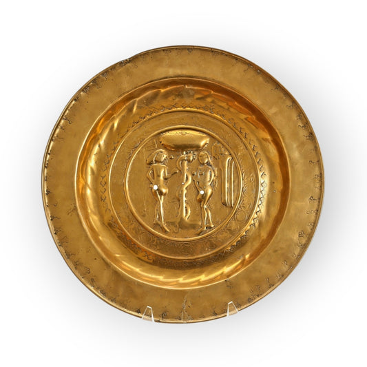16th-Century / 17th-Century Antique Brass Alms Dish, Attributed to Nuremberg, Germany, Depicting Adam & Eve, The Serpent & The Tree of Knowledge