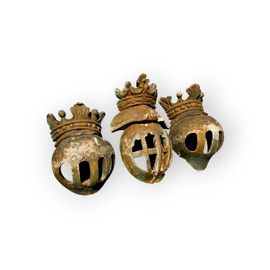 Set of Three Large 17th–18th Century Antique Carved Limewood Heraldic Helms with Coronets