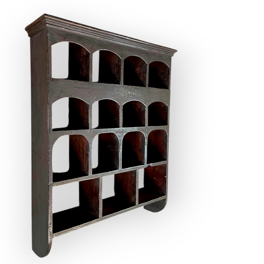 George III Period, Early 19th Century English Antique Pine Wall Rack With Pigeon Holes - In Original Painted Finish