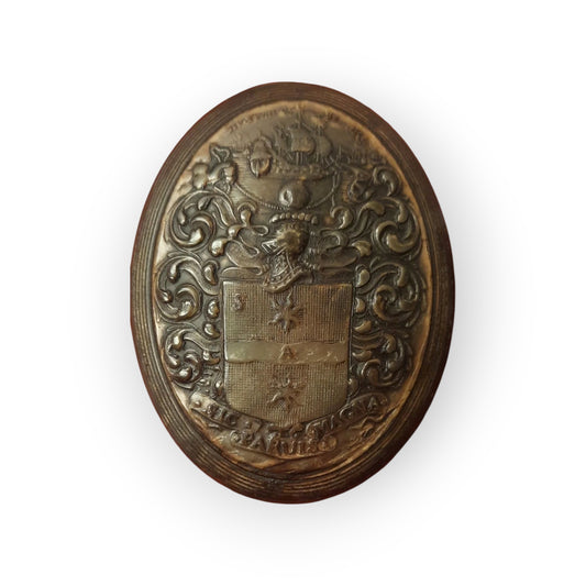 An Early 18th-Century English Antique Pressed Horn Tobacco Snuff Box, Attributed to John Obrisset (Active 1705-1727), Depicting The Arms of Sir Francis Drake