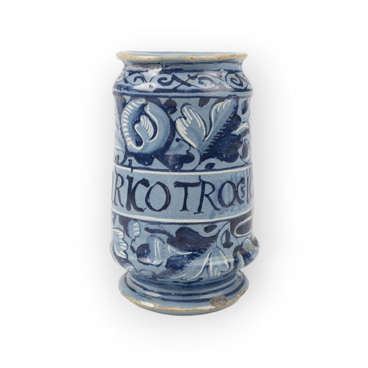 Late 17th‑Century Antique Faience Albarello Apothecary Jar – “PILL: ASARICOTROCSICA"”