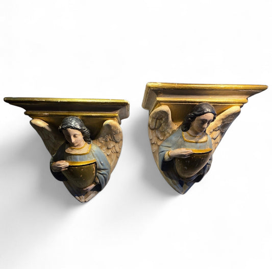A Pair of Large 19th Century Antique Plaster Corbels Cast in the Form of Angels