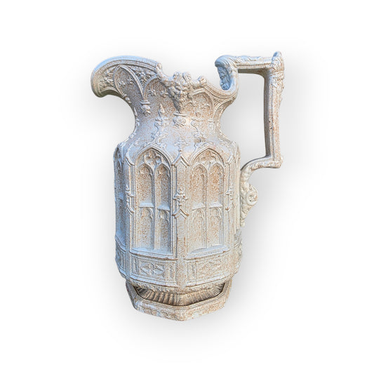 Mid 19th-Century English Antque Moulded Earthenware "Gothic Windows" Jug, Bearing the Mark of Charles Meigh, Dated 1842