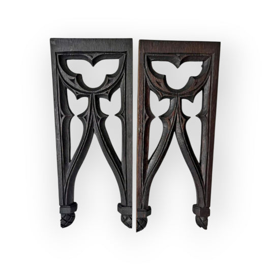 Pair of 19th Century Gothic Revival Antique Carved Oak Tracery Panels – France, c1850