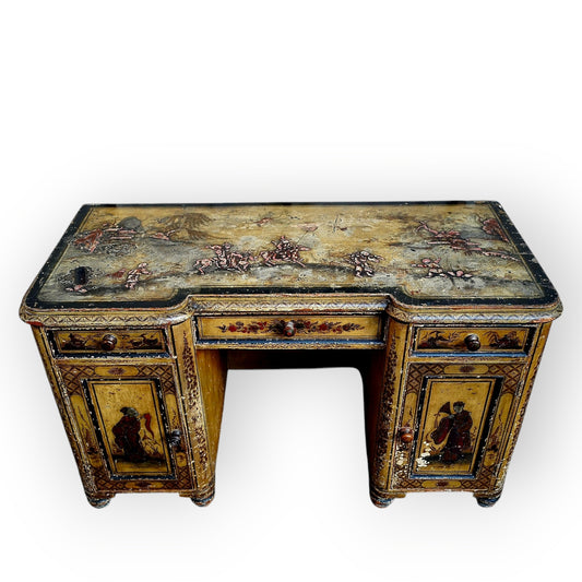 18th-Century Style, Late Victorian/Edwardian Period-Made, English Antique Chinoiserie Pedestal Desk