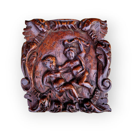 Early 17th-Century Antique Carved Walnut Panel Depicting Cain and Abel