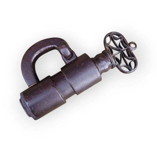 Large 16th-Century Style, 19th-Century Made, Antique Iron Barrel Lock / Padlock