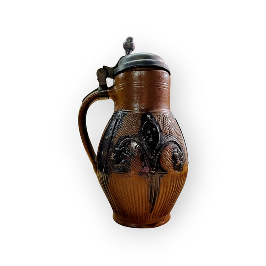 Late 18th-Century German Antique Muskau Stoneware Beer Stein / Tankard, With A Pewter Lid