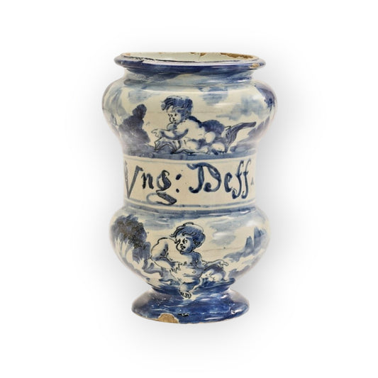 Late 17th-Century Italian Antique Tin-Glazed Maiolica Apothecary's Albarello Drug Jar