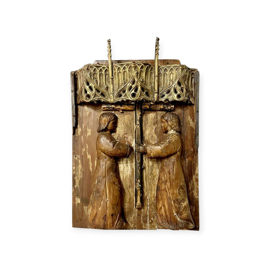 16th-Century & Later Gothic Antique Carved Wood Panel Depicting Angels Kneeling Below A Cross Symbolising The Passion Of Christ