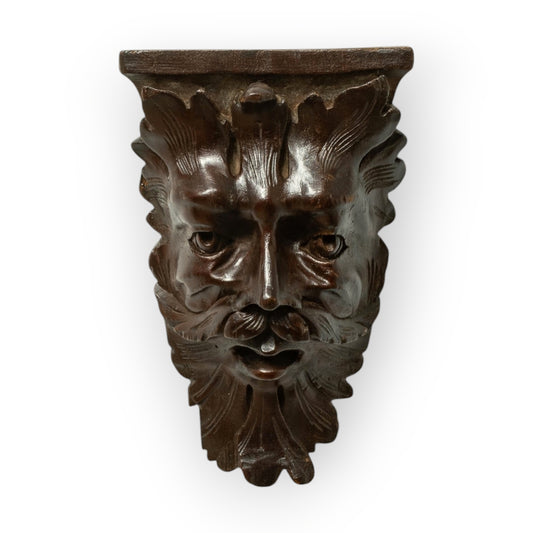 Mid 19th Century English Antique Carved Beech Wood Panel / Corbel Depicting a Green Man