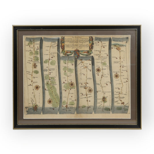 17th-Century English Antique Strip Map / Coaching Road Map By John Ogilby (B.1600-D.1676)