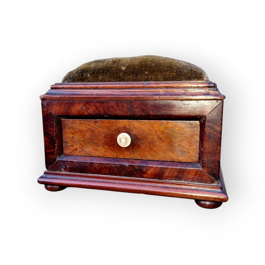 Late George III Mahogany Sewing Box with Original Pin Cushion
