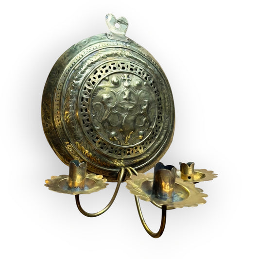 17th-Century Flemish / Dutch Antique Brass Wall Reflector / Wall Sconce With Three Candleholders