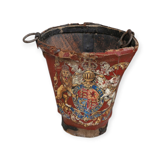 Mid 19th Century English Antique Leather Fire Bucket Bearing the Royal Coat of Arms of Queen Victoria