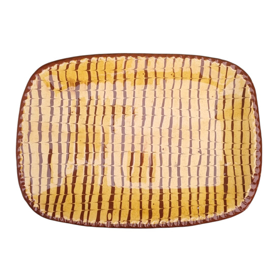 Large 18th-Century Style English Antique Earthenware Comb-Decorated Slipware Loaf Dish / Baking Dish