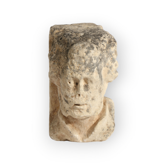 Life-Size Late Medieval Period English Antique Carved Stone Head Of A Bearded Male
