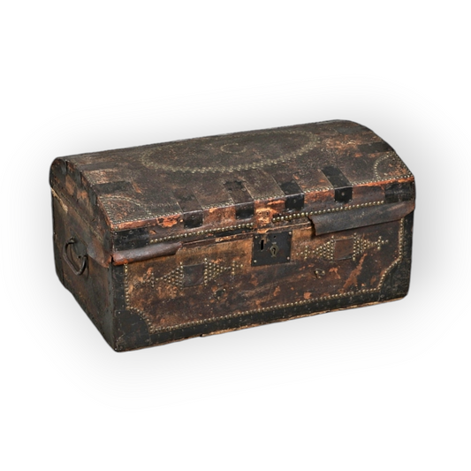 17th-Century English Antique Domed-Topped Leather-Clad Iron-Bound Chest / Trunk