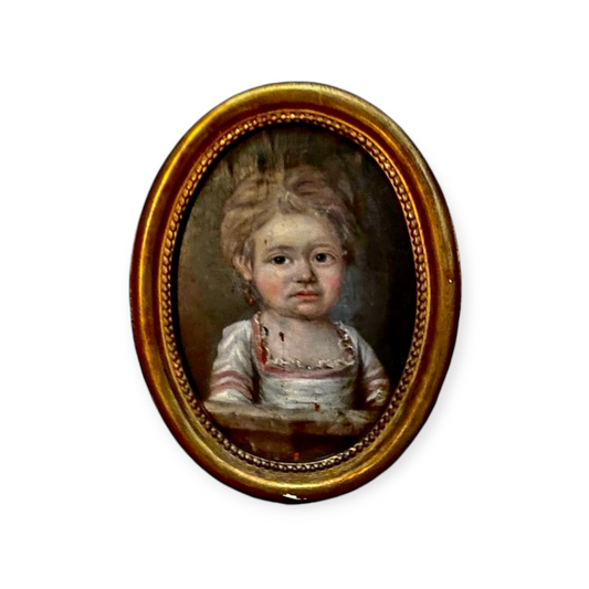 Naive 18th-Century Italian School Antique Oil On Canvas Portrait Of A Young Girl