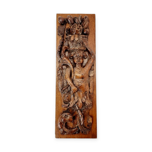Naive 18th-Century Antique Carved Walnut Panel Fragment Depicting The Virgin