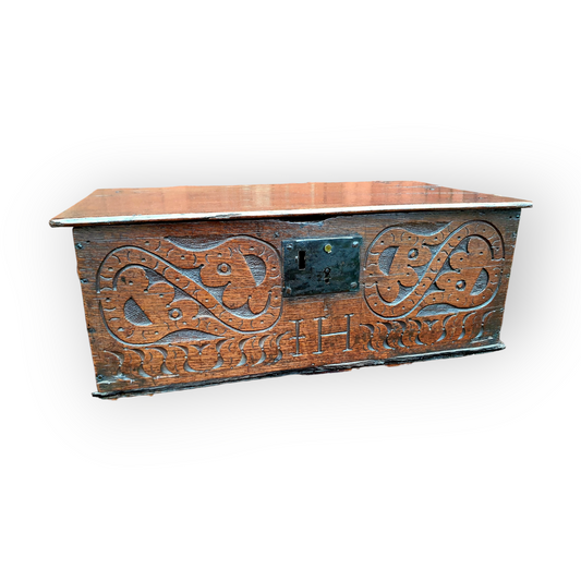 17th-Century English Antique Oak Bible Box / Boarded Box Bearing Initials "IH"