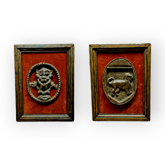 Pair of Early 17th-Century English Antique Carved Oak Mounts / Appliqués, Presented in Contemporary Frames
