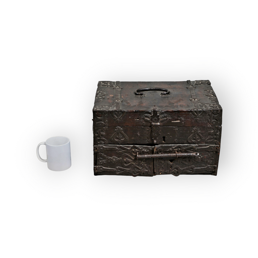 Early 17th-century Continental Antique Oak Strong Box With Iron Bindings