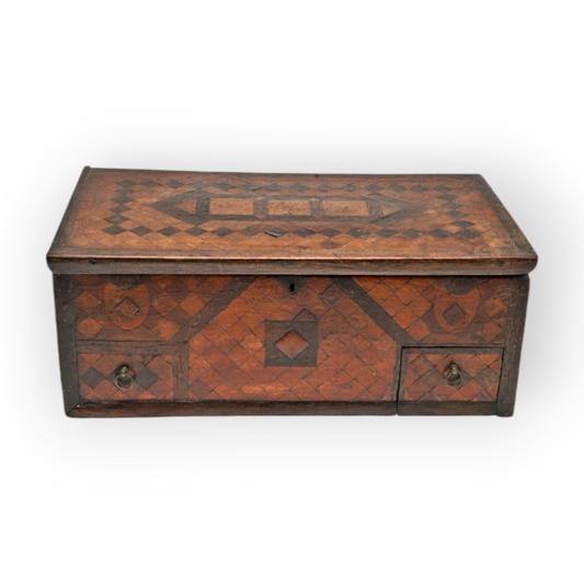 17th-Century Continental Antique Parquetry-Inlaid Wooden Table Box