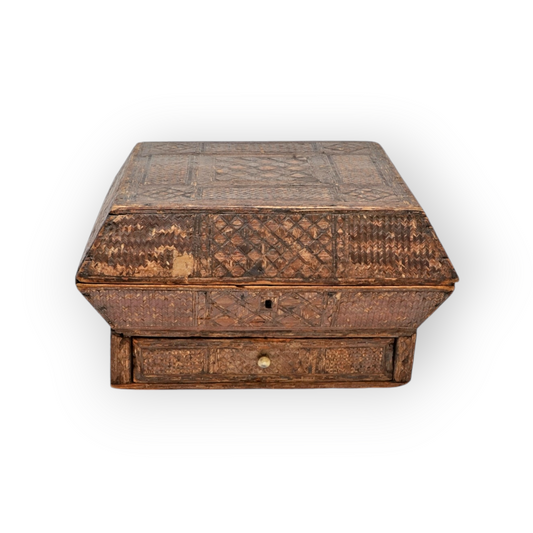 Late 18th-Century / Early 19th-Century Antique Napoleonic Prisoner Of War Straw-Work Box, circa 1793-1815