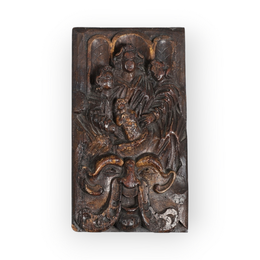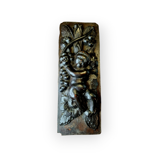 17th-Century Flemish Antique Carved Oak Panel Depicting A Cherub/Putto