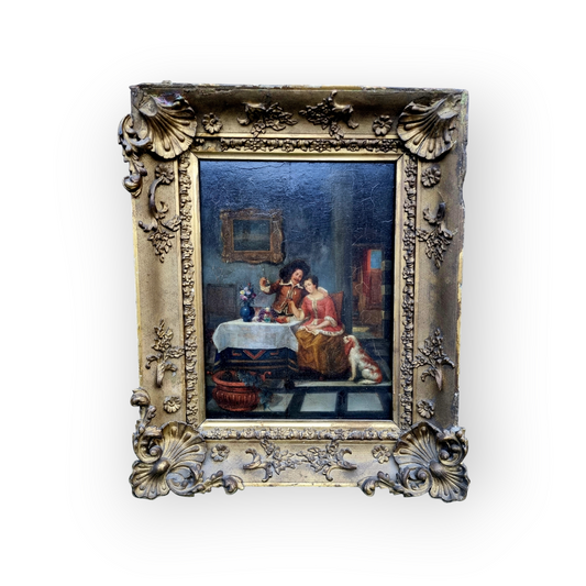 Follower of Johannes Vermeer (1632-1675) - An Early 19th-Century Dutch School Antique Oil On Board Entitled "The Wine Glass"