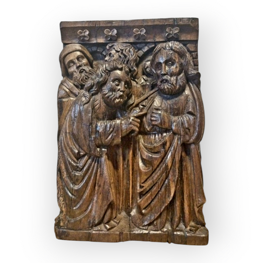 Large & Impressive 15th-Century Flemish Antique Carved Oak Retable Panel Depicting Christ & Doubting Thomas