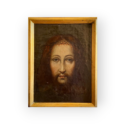 Ecce Homo (Head of Christ) - Follower of Jan van Eyck (1390 - 1441) - A 17th-Century Flemish School Antique Oil On Canvas Portrait