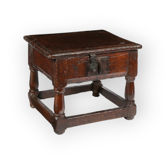 Mid 17th-Century English Antique Oak Box Stool, circa 1640-1660