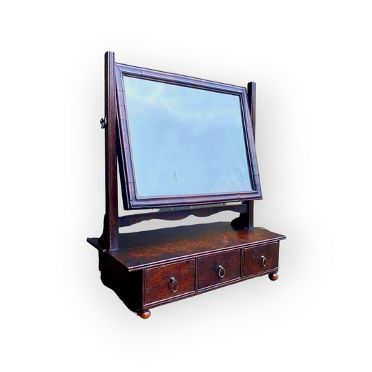 Diminutive Early 18th-Century English Antique Oak & Walnut Vanity Mirror / Toilet Mirror