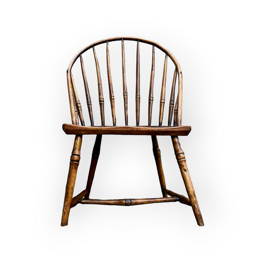 Primitive Antique Elm & Ash Hoop-Back / Bow Back Windsor Chair, Circa 1800