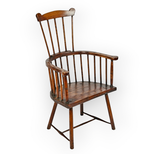 Late 18th-Century Primitive English Ash & Elm Antique Comb-back Windsor Armchair
