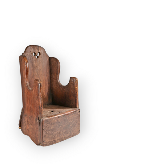 A Primitive 18th Century English Antique Oak Child's Lambing Chair Of Small Proportions
