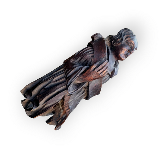 A Very Large & Impressive 17th Century Antique Carved Pine Hammerbeam Roof Angel