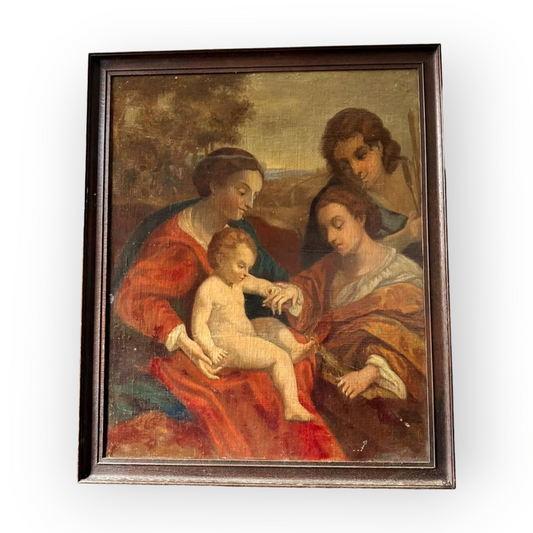 Follower of Correggio - A 16th Century Renaissance Style, 19th Century Made, Italian Antique Oil on Canvas Portrait "The Mystic Marriage of St. Catherine of Alexandria".