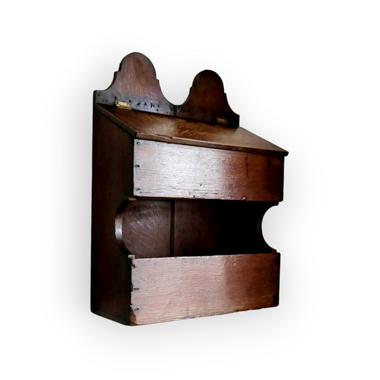 Early 18th Century Welsh Antique Oak Two Tier Mural Candlebox / Spill Box