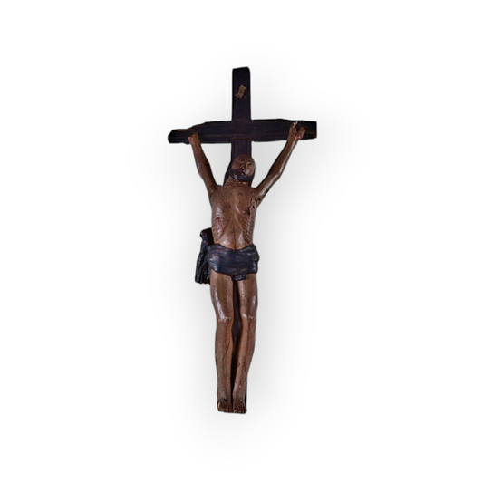 A Large, Naive 16th Century Antique Carved Wood Corpus Christi