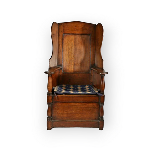 Late 18th Century Primitive Antique Child's Box Chair / Commode Chair