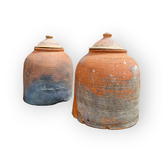 Rare Pair of Large 19th Century English Antique Terracotta Rhubarb Forcers With Lids