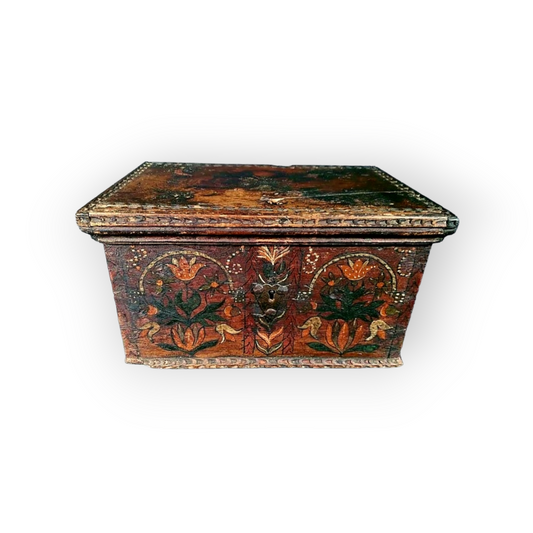 Late 17th Century Swiss Antique Folk-Art Decorated Table Top Box Dated "1687"