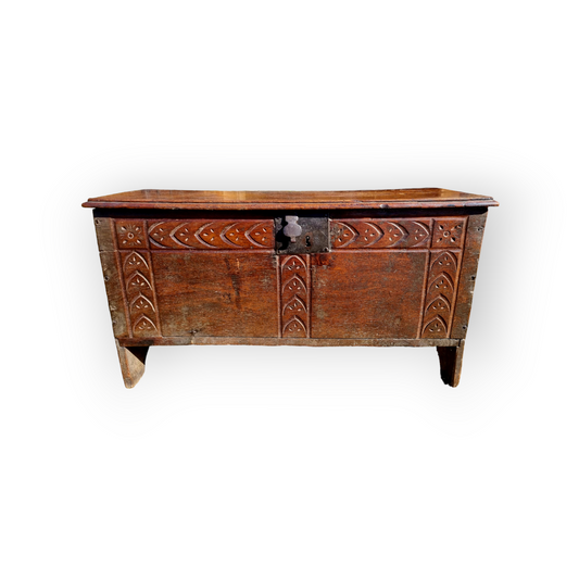 Early 17th-century English Antique Oak Boarded Coffer or Chest